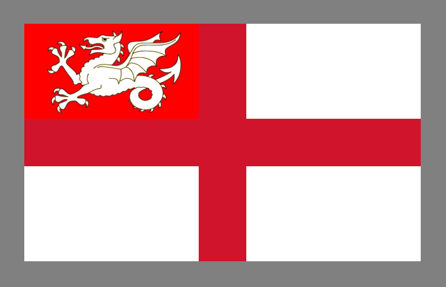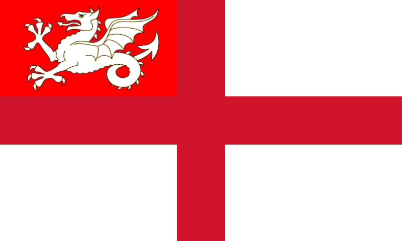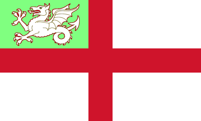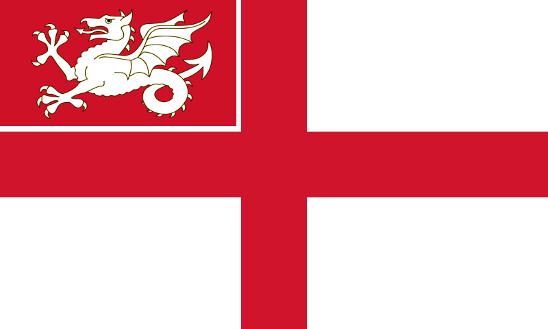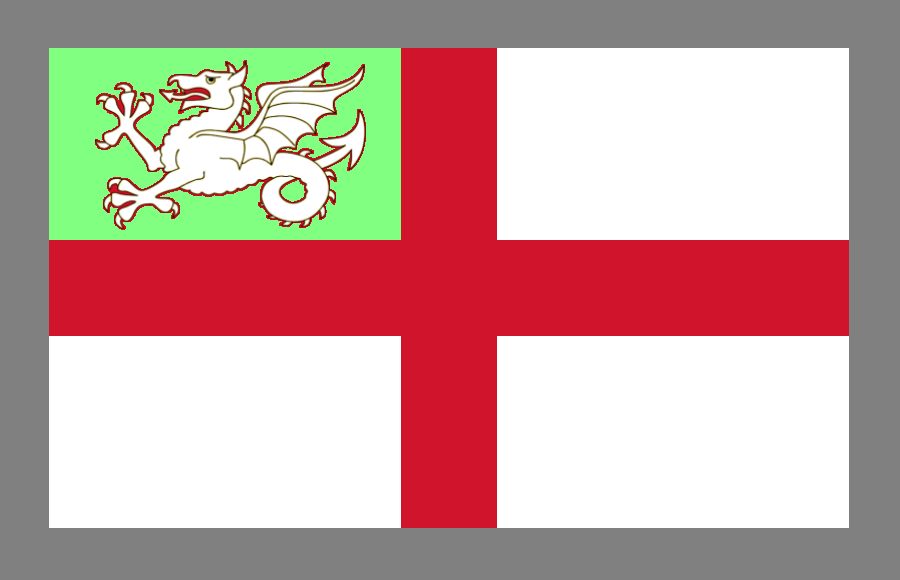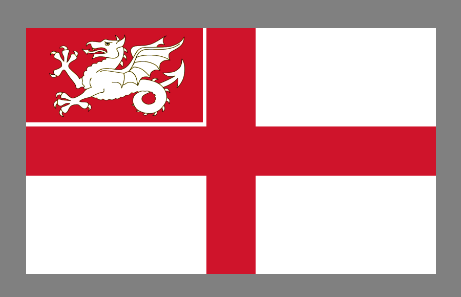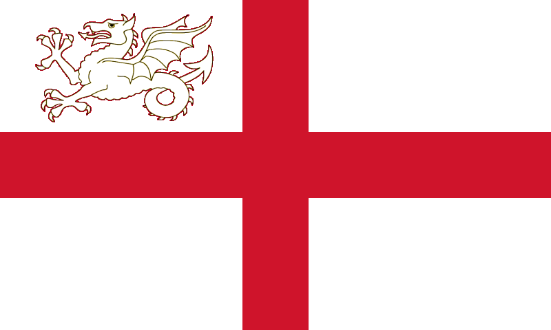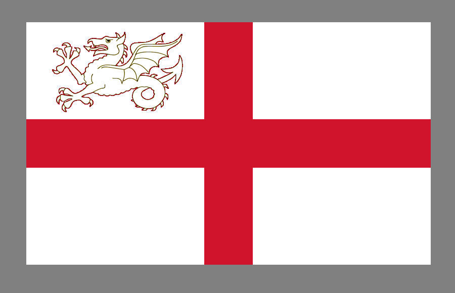 The Englander Home FlagThe white dragon top left guards the wealth of the English : their homeland and its resources, their culture and traditions, their character and their health.The background colour of the top left quadrant is not universally agreed. We suggest it should be green, representing the green fields of England which themselves are and stand for the beauty of England, the living-space of England and the food-producing and wealth-producing capacity of England which the English dragon rightfully guards. This is superimposed on the cross of Saint George who embodies the spirit of the Christian-hearted Englishman who is concerned to do good in the eyes of God. Saint George fights the tyrant's dragon who guards the wealth that the tyrant has unrightfully hoarded up. Notes: The English Dragon can be seen as a symbolic guard dog in its desire to protect its master's possessions. The background of the white dragon quadrant should not run into the cross of St.George which must remain distinct. As here this can be achieved by using a different, perhaps lighter or more orangey, shade of red, or by separating it from the cross with a sliver of white. In short: Englander Flag : The English White Dragon, like a heavenly guard dog, defends the wealth of the English, their homeland and traditions. The cross of Saint George represents their Christian spirit to do good in the eyes of God and overcome the dragon of the tyrant. N.B. Flag designs on the right of this page may be freely downloaded. Englander Diplomatic FlagIn the event that England regained a national government, while still being part of a wider British union, then we would recommend the White Ensign as a flag to use on the international stage. This of course is the Cross of Saint George with a Union Flag in the top left quadrant.